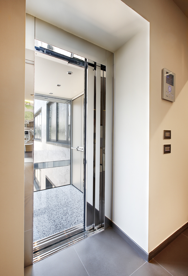 • DomusLift z avtomatskimi vrati DomusLift z avtomatskimi vrati DomusLift je zdaj na voljo v različici z drsnimi avtomatsko 2 - ali 4-krilnimi vrati, ki se ponaša z zmanjšano poglobitvijo.